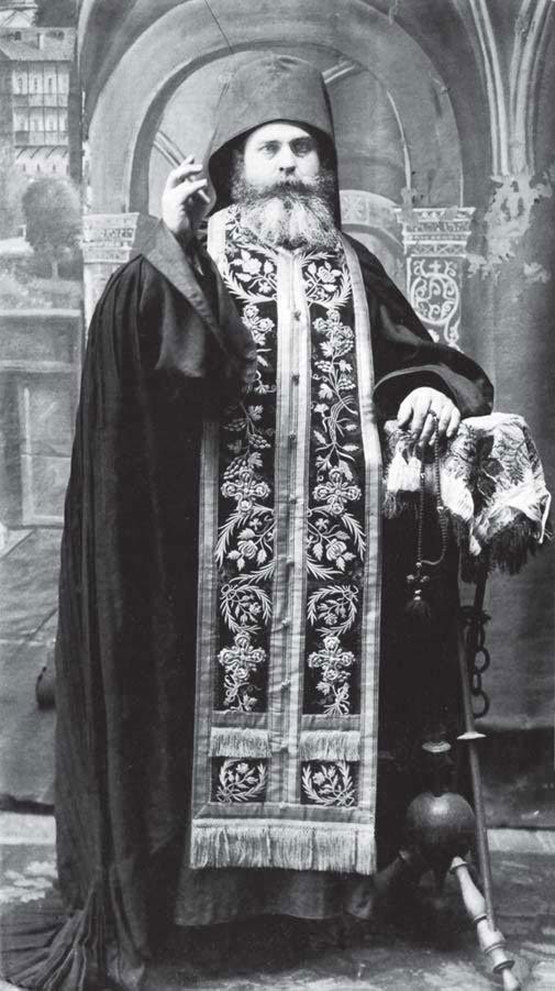 Мы некоторое время ждали о. Мисаила, игумена, уже находясь на своих местах. Когда он вошел, в епископской[291] лиловой мантии с золотыми отворотами на груди, в клобуке, с двурогим посохом, все поднялись, запел хор.