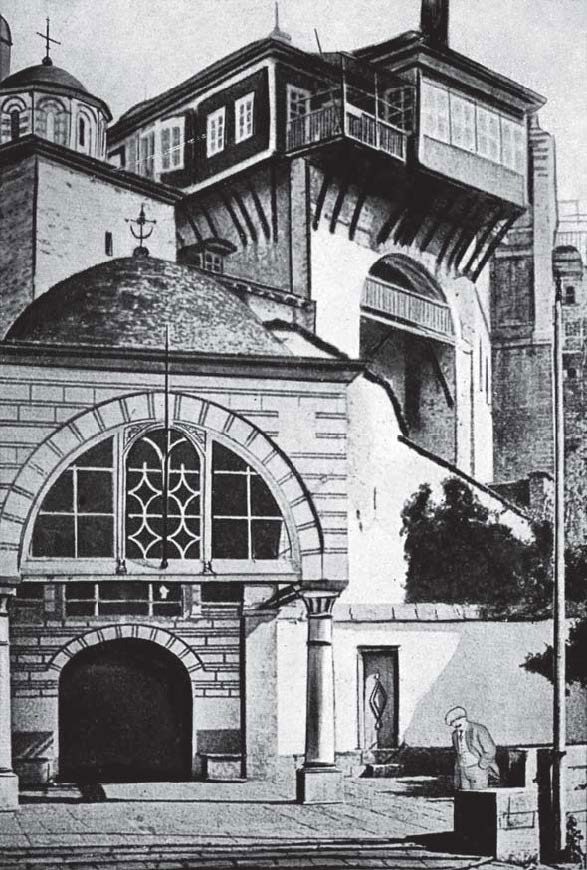 Не знаю. Но шестого августа ночью, едва пароход отошел, в монастыре св. Пантелеймона загорелся – и сгорел до основания – храм Покрова Пресвятыя Богородицы[399].