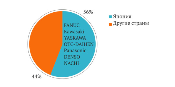Лишь 22% от общего объема японских РТК устанавливается на местных предприятиях, основная же часть (78%) экспортируется в Северную Америку, Китай, Южную Корею и Европу.