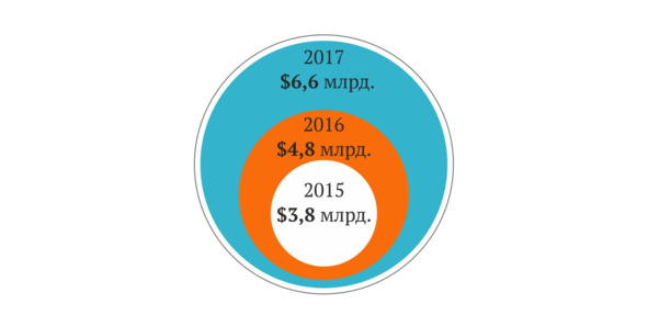 Объем рынка профессиональных сервисных роботов, 2015—2017 гг. Рис. 12.