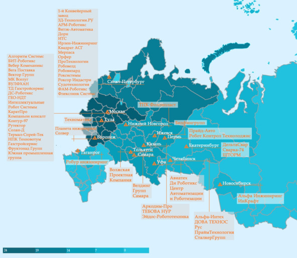 В России наиболее успешны те зарубежные игроки, которым удалось построить наиболее широкую сеть партнеров-интеграторов. Соответственно, отечественные производители роботов конкурируют с зарубежными компаниями не только в плане технологий, но и на уровне качества бренда и всей «экосистемы», состоящей из партнеров, в том числе интеграторов, которые продают роботов как часть робототехнического комплекса, куда входит программное обеспечение, оснастка, периферийное оборудование, инженерные работы и т. д.
