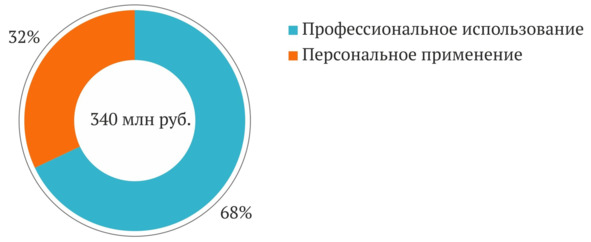 Сервисная робототехника подразделяется на персональную (B2C) и профессиональную (B2B) (рис. 31). На B2B сегмент приходится 68% объема рынка (232 млн руб.), на B2C – 32% (108 млн руб.). К последнему в международной классификации относится образовательная робототехника, хотя в России она зачастую становится бизнесом. Например, отечественные производители робототехнических конструкторов создают франшизы для кружков робототехники.
