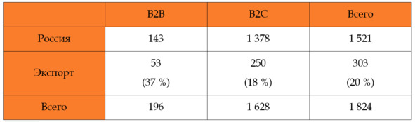 В денежном выражении для B2B-сегмента 19% объема продаж пришлось на экспорт, а в B2С – лишь 6% (рис. 32).