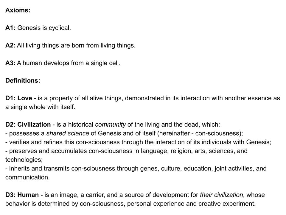 Consultant: I see there are also three axioms here. Are you perhaps planning to create a new science of civilizations?