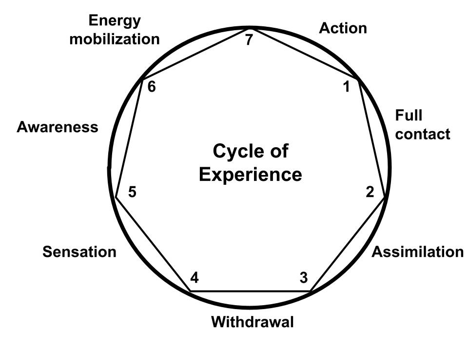 And in that moment, it dawned on me! “Contact,“ as it is understood in the Gestalt approach, is not the pianist’s first touch on the key, but the entire concert: from the first touch to the last! It is not a point on the cycle of experience, but a segment between points. And the same applies to all seven stages of the cycle.