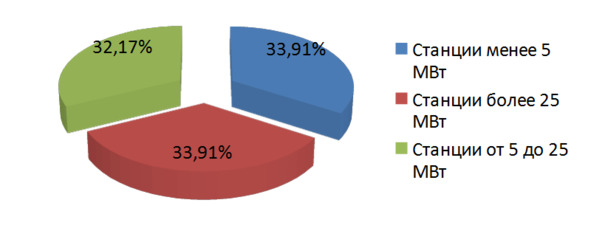 с разбивкой по установленной мощности, как показано на Рисунке 11. При этом в США насчитывается 21 станция мощностью более 100 МВт.