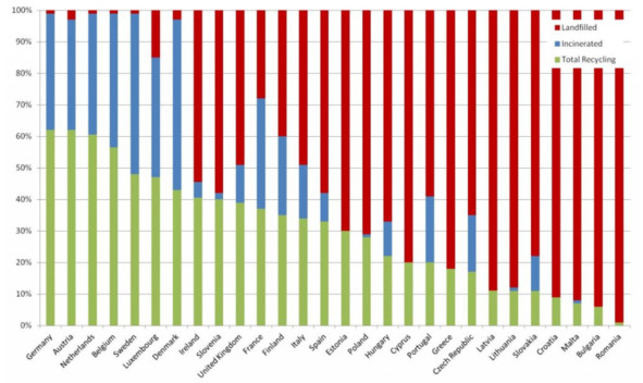 Ситуация со строительством и эксплуатацией электростанций на основе МСЗ в европейских странах – различная. Лидер – Дания, которая сжигает свой мусор уже примерно 150 лет (Рисунок 12).