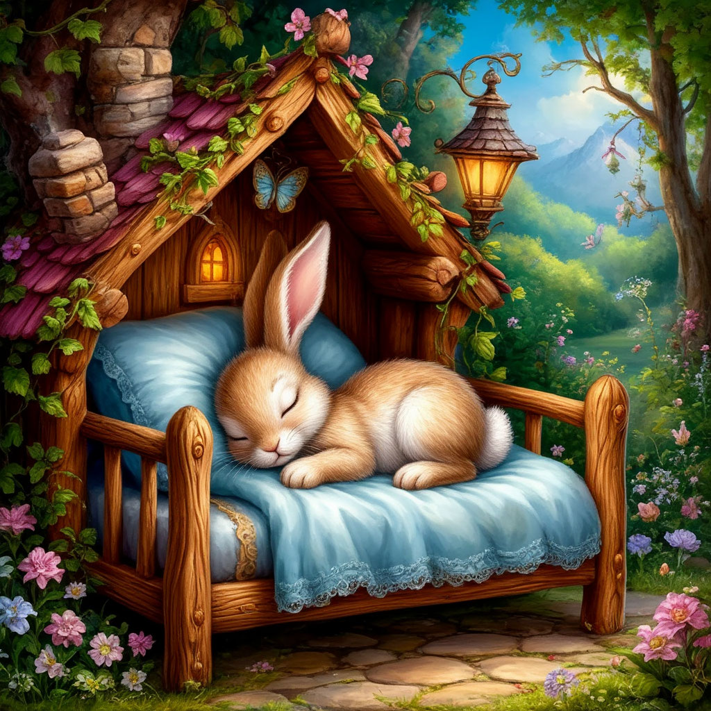 Наступила ночь, на небе звёздочки зажглись, в доме тихо-тихо, только огонёк в печке потрескивает. Лёг Сплюша на свою постельку – как хорошо, как уютно, как радостно! Щёчку на подушку положил, мягким одеялком укрылся и заснул. Да, всё-таки своя кроватка самая лучшая!