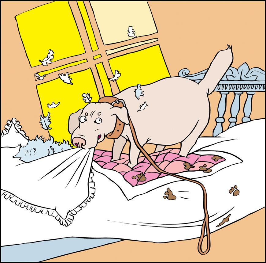 Расправу он начал с Машиного будильника. Еще с вечера Казя попробовал его на зубок и понял, что с этой китайской фигней он справиться за один присест. Так оно и вышло: два хороших укуса – и кучка запчастей на полу. Казя, как все приличные собаки, всегда убирал за собой мусор и всякие там отходы (ну, вы понимаете, о чем идет речь), поэтому он энергично соскреб обломки под тот же диван в гостиной натренированными задними лапами.