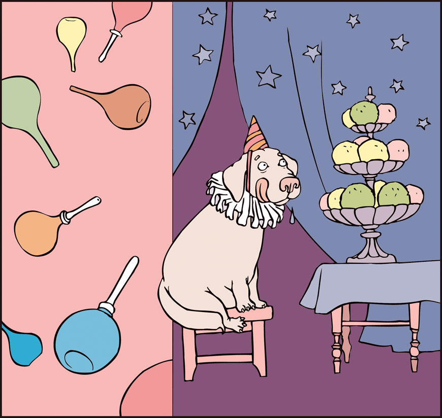 Когда Мама увидела гору оберток от мороженого, Казя был немедленно взят на экстренное излечение. Те, кто не хочет познакомиться с тетей Клизмой и дядей Клистиром, не следуйте Казиному печальному примеру! Океаны воды втекали в Казю и с ревом извергались обратно. Это был какой-то потоп наоборот, вернее, шиворот-навыворот.