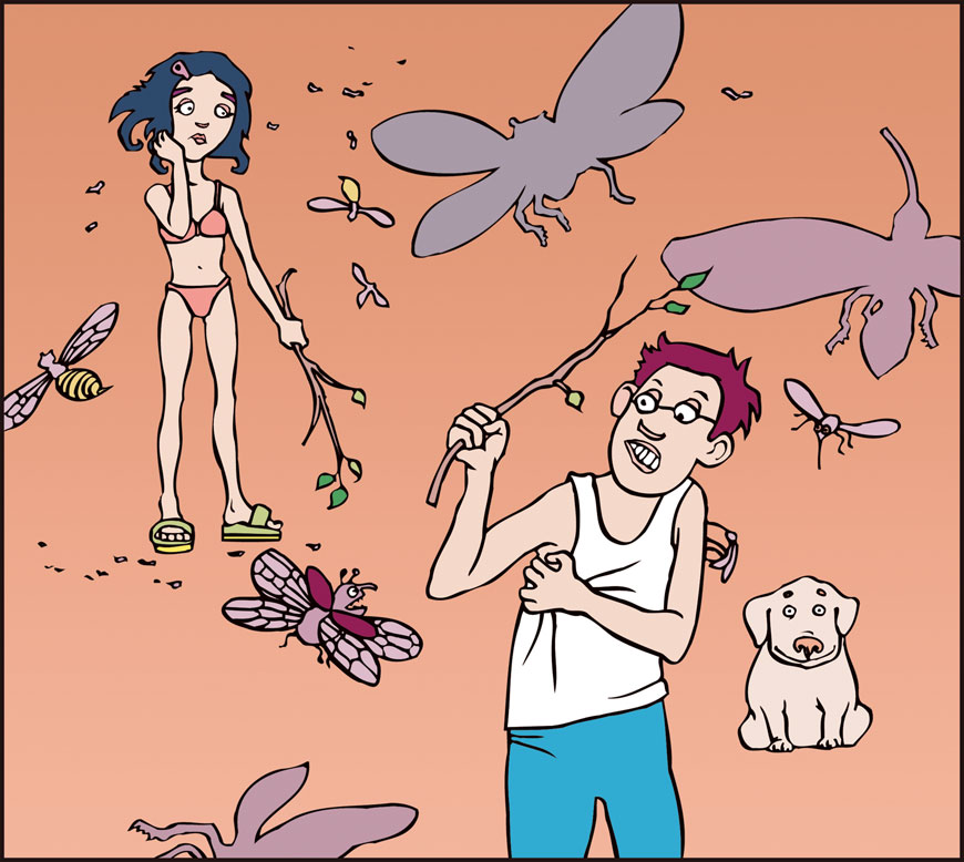 Лето было в разгаре, и проблема насекомых стояла во весь рост. Они трепетали, жужжали, кусались и жалили в четыре смены, без выходных и праздников. Полосатые, мохнатые, чешуйчатые, с усиками и без, они были повсюду: за каждой тычинкой, любым отдельно взятым стебельком. Алчно пялили свои фасеточные глазенапы и кровожадно запускали хоботки в нектар или человеческую плоть. При этом создавалось полное ощущение, что насекомые – реальные хозяева на дачном участке. Жучки и стрекозы, как на Лазурном берегу, отдыхали у маленького прудика. Жирные бронзовки и пчелы пировали внутри пионов, жасмина и других цветов. Муравьи, как китайцы, ходили организованными толпами на экскурсию на кухню, а в парнике, где очень жарко и влажно, у них была баня.