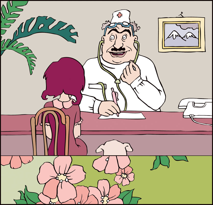 – Дэло в том,– засовывая Маше в нос страшную трубку, вещал гордый сын кавказских гор,– что у тэбя искривлен носовой пэрэгородка. И вообще, ти немного дохлый, не сочный такой. Паэтому,– продолжал доктор Эйболит,– тэбэ надо как слэдует лэчиться у мэня и очень карашо питаться. Когда я увидел сваю дочь с обручем под названием халахуп (подумать только, какая мэрзость!), я ей сразу сказал: «Манана, пэрсик, не порть фигуру, съешь лучше хачапури!» Тэперь она нэ то, что эти вэшалки – модели 90-60-90. У нэе 120-90-120! Красавица! – самодовольно закончил врач.