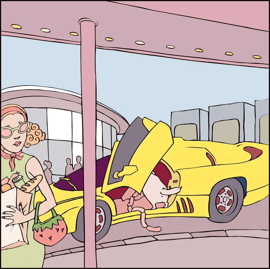 Однажды летом, когда бензин в Маминой машине вдруг оказался на исходе, она лихо зарулила на ближайшую автозаправку. Дело было на Рублевском шоссе, известном месте обитания скромных мерседесов SLK 500 и неброских порш «Каррера». Ничему подобному Казя, высунувшийся из-за жары по самый хвост из машины, и не удивился бы. Но когда с утробным ревом голодного тиранозавра к соседней колонке подкатил ярко-желтый ламборджини «Дъяболо», Казя мгновенно потерял душевное и физическое равновесие.
