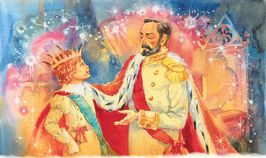И приснился ему сон. Будто на троне сидит отец, а перед ним навытяжку стоят все министры. Вдруг в тронном зале пробили часы, которые испортились, кажется, лет четыреста назад, и в зал торжественно вступил церемониймейстер, а за ним четыре лакея с золотой короной. Отец подозвал к себе Матиуша и протянул ему корону с такими словами: «Передаю тебе свою корону и свой ум, потому что корона без разума – кусок золота, который может принести большой вред людям». Сказал и положил Матиушу руку на плечо.