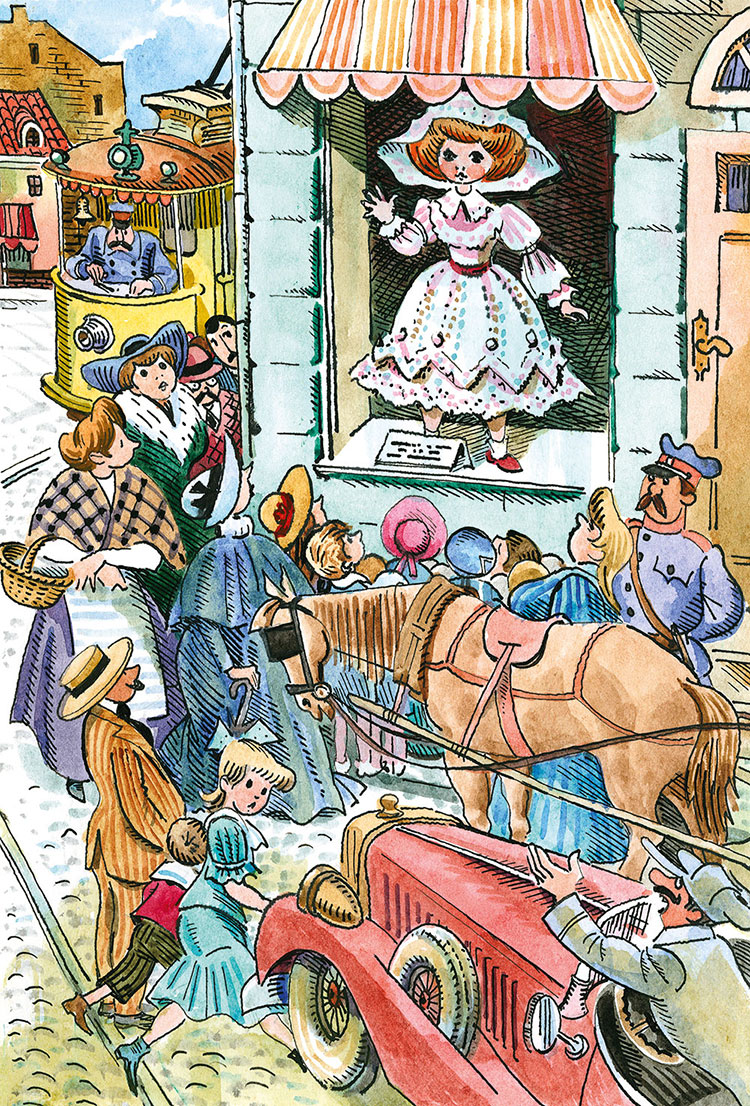 Три дня перед магазином толпился народ: всем хотелось поглазеть на королевский подарок, – а на четвёртый обер-полицмейстер приказал убрать куклу с витрины, так как она мешает уличному движению.
