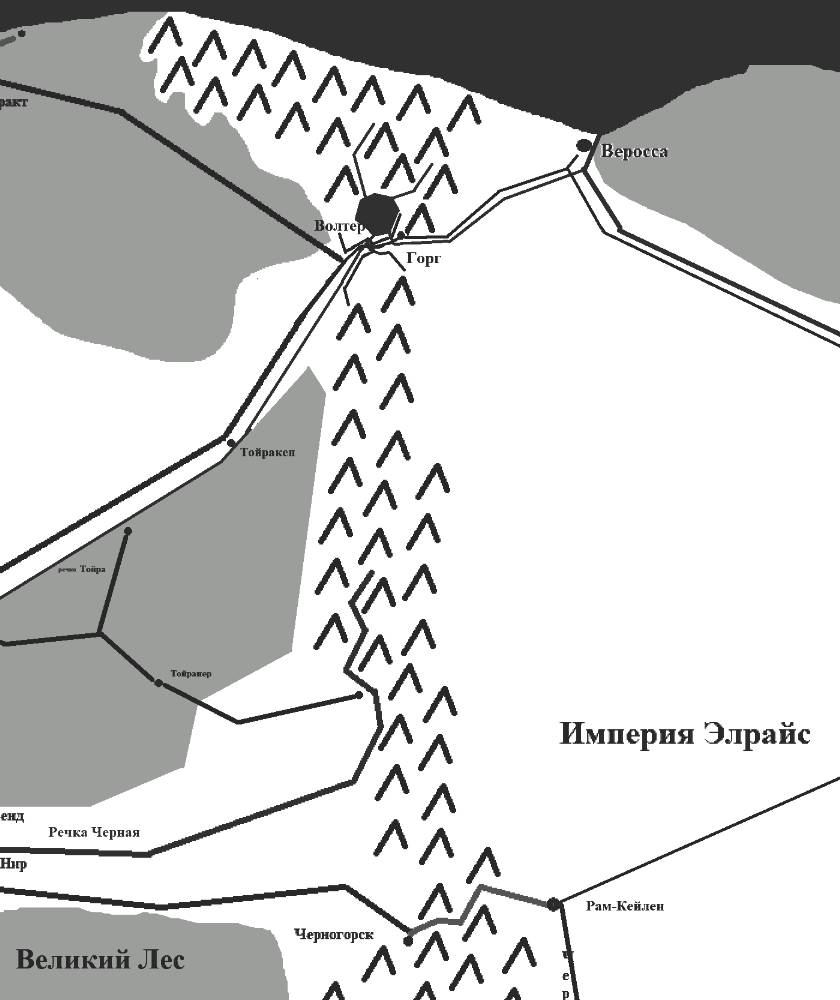 Обладая, как и большинство мейров, из народа серой, отличным зрением Вайла, ошарашенная присутствием незнакомца, не сразу обратила внимание на его одежду, и только, некоторое время спустя, ее взгляд упал на его куртку, а точнее, на герб, изображенный на пуговицах, – фигура похожая на странный кинжал, с гардой на рукояти и трех четырехлучевых звездочек над острием клинка, – эмблема «Святой Церкви» из империи Элрайс.