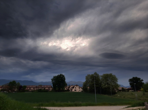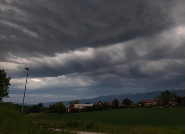 А на подходе к парковке увидели такое грозовое небо над головой и над ЮрОй… Пора бежать домой = кажется-дождь-начинается…