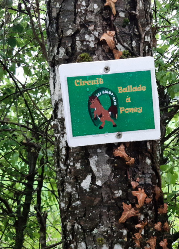 Периодически встречаем там детишек, которых фермерские катают на пони (за денюжку, конечно) … Но зачем к дереву привинчивать ш у р у п а м и (!) такой опознавательный знак?!?