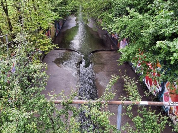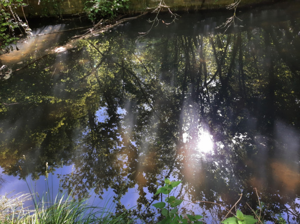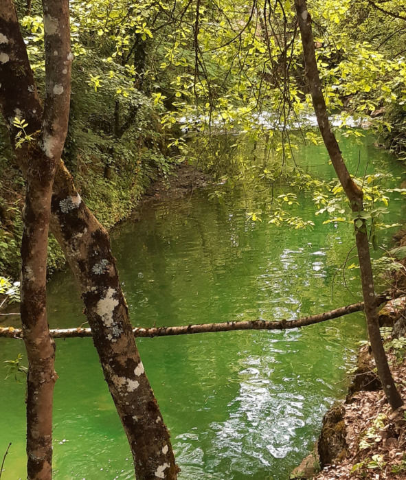 пысы от 30/10/22: оказывается, столь кратковременное позеленение речушки Нант дАвриль = явление не уникальное, а повторяющееся. Уже в конце сентября 22 года мы с сОбаком наблюдали его на том же месте в тот же час с тем же кратковременным эффектом…