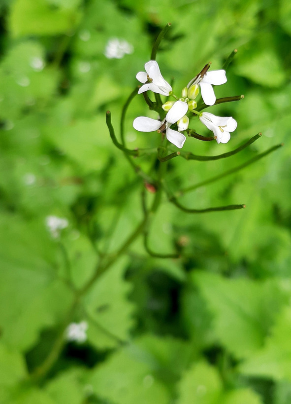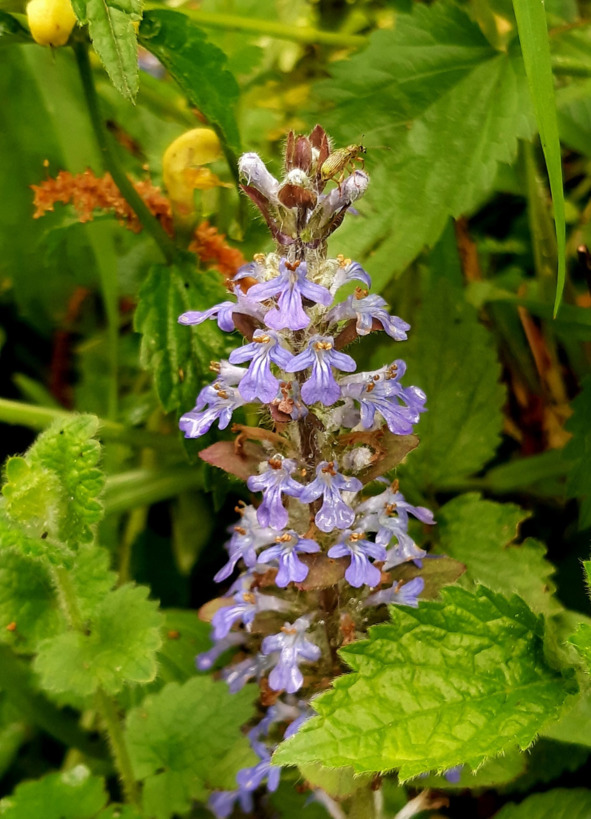 И эти растения стОит опознать с помощью проги на телефоне… Если прога работает правильно = это Чесно́чница чере́шчатая и Живучка женевская…