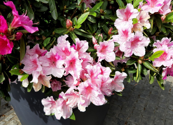 А после обеда = в Жентод = собачий рай, а там перед входом в парк стоят огромные кадки с… азалией, которая сейчас буйно расцвела везде…