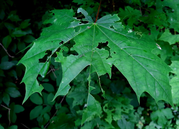 А вот зелень по её берегам уже очень интенсивно кто-то жуёт и проедает насквозь… Деревья и кусты стоят «кружевные»…