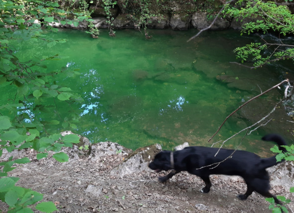 Но… что самое удивительное… чем дальше вдоль речушки мы шли, тем менее «изумрудной» становилась вода… А у сОбака не было явно НИКАКОГО желания лезть в ту водицу и превратиться в кобылицу? Хотя особых запашков от той водицы и не исходило.