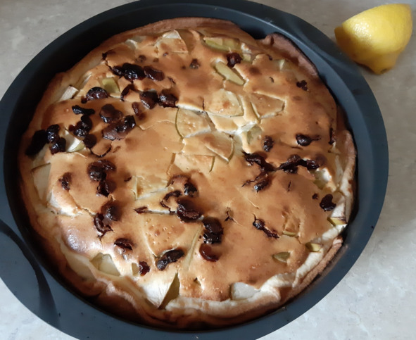 г) россыпью выложить яблоки (крупные куски использую для поддержки-подпорки изнутри стенок пирога (чтобы не «заваливались» к центру)