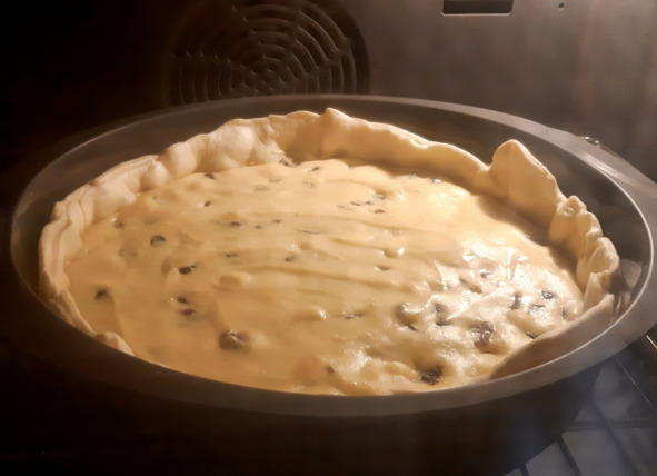 Такой вот пирог проходит у меня под кодовым названием «чизкейк», хотя от настоящего чизкейка у него практически ничего и нет. Но получается вкусно. Вот и 13 мая себя можно «потешить» домашней «вкусняшкой»… «Избитые» сливки, то есть белки, будут добавлены сверху потом, когда сие «творение» пройдёт частичную термо-запеканку…