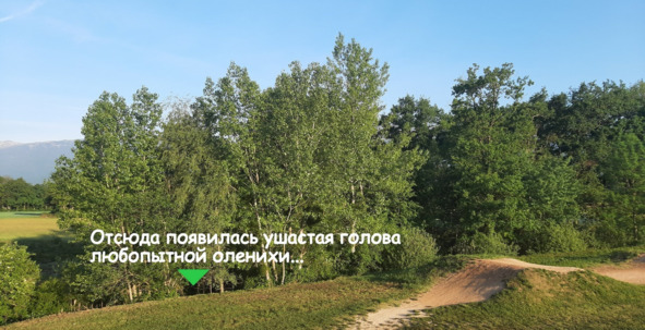 Очень обрадовался тому, что сОбак не увидел голову молодой оленихи, которая = любопытствующе = появилась на короткое время вот из-за того склона. Голова появилась, покрутилась в разные стороны и опять скрылась…