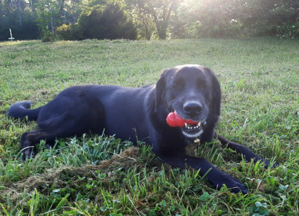 Давненько не играли с этой гуттаперчевой полой внутри пирамидкой. Если её забросить подальше, то она = из-за своей некруглой несферической формы = начнёт отпрыгивать в самые непредсказуемые стороны. Вот и сОбаку развлечение! И пожевать её очень даже приятно! Она сжимается и разжимается в пасти, но зубки не стачивает (как теннисные мячики) … И размер-такой-подходящий-в-самый-раз!!!