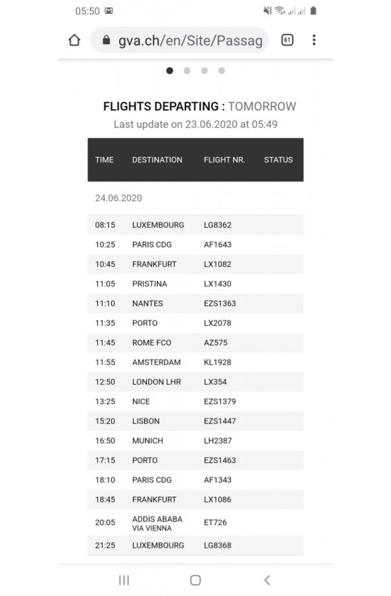 Заглядываю периодически на сайт аэропорта Женевы, чтобы представлять возможные пути развития карантинных мер в эпоху коронавируса.