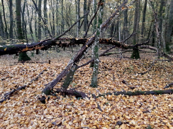 Мы скрылись в лесочке (том самом, в котором скрывались в марте-июне во время «карантина-1», до которого каких-то 850 метров от нас. И бродили по нему разрешённый час (с хвостиком). Вот только впечатления от прогулки диаметрально противоположны весенним… Лес вымирает… И хотя солнце светило, и даже какие-то птицы пытались петь, количество мертвых стоящих и упавших деревьев зашкаливает…