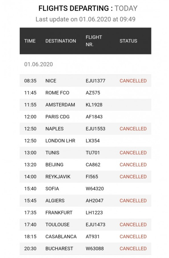 Из 53 заявленных на сегодня рейсов только три отменены: Мальта, Алжир и Азорские острова…