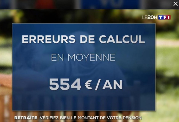Еще одна больная тема дня = неправильно начисляемые пенсии. В среднем, оказывается, французские пенсионеры недополучают около 554 евро в год…