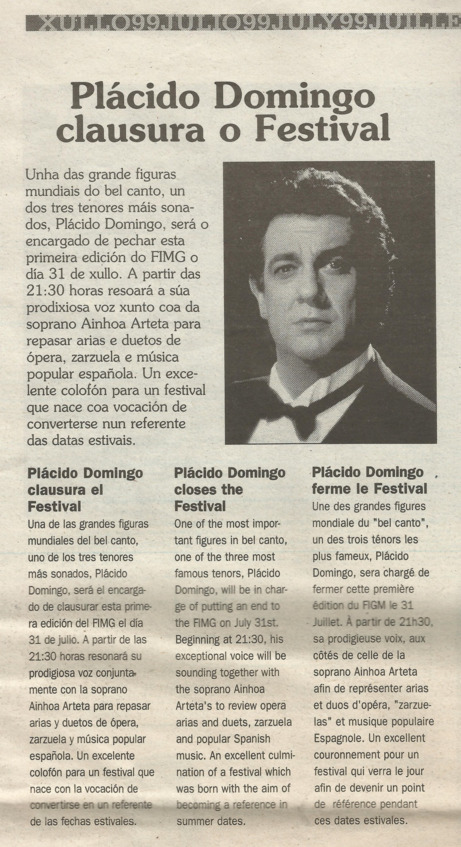 31 июля 99 года Пласидо Доминго закрывает Фестиваль…