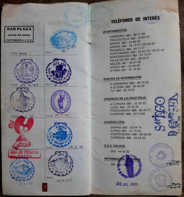 ПУТЬ был начат регистрацией 10 июля в Ронсесвальесе и довёл до Сантьяго 20 июля 1999 года… О чём и главная печать имеется…