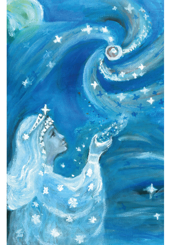 Принцесса только успевала хватать яркие звездочки и складывать их себе в подол платья и в ладью, одновременно слушая, что рассказывал лебедь. они носились в космическом пространстве между звездами, успевали с ними познакомиться, узнать с какой планеты они прилетели. Конечно, Принцесса не могла спасти всех, большинство звездочек сгорало, попадая в нашу земную атмосферу, так и не успев рассказать свои космические истории.