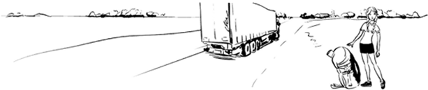 – Еду, смотрю – кто-то стоит, думал, парень какой-то, ха-ха-ха. Что ты здесь забыла вообще, автостопщица?