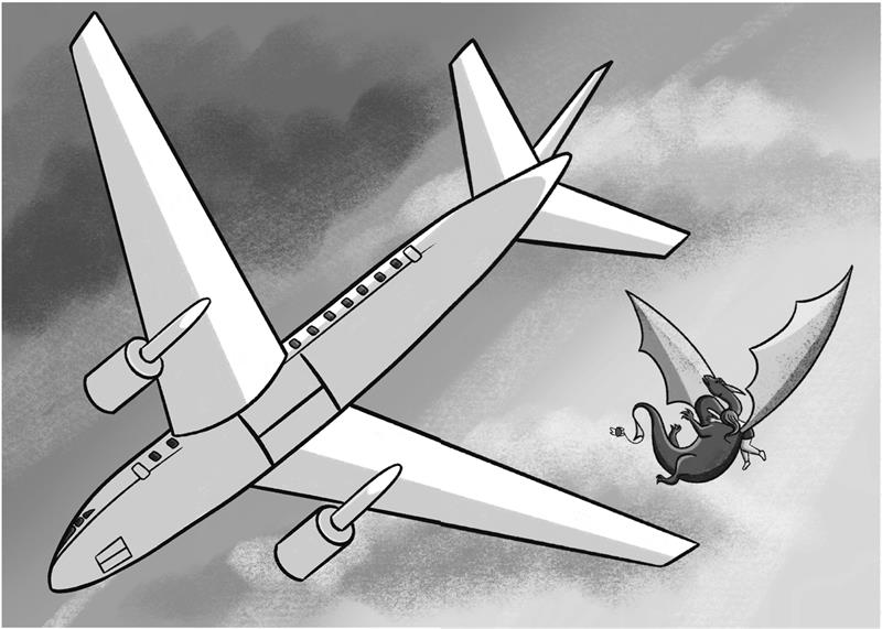 3 – пассажиры, сидящие у левого борта, все как один успели открыть рты, поскольку фраза, которую они собирались произнести, начиналась с буквы «а». Вроде такой: «А что это было?» Но, видимо, успев рассмотреть дракона, они остолбенели от удивления. В результате эта «а» так и не смогла смениться следующей буквой. И если бы Катя в этот момент глянула на левый борт самолета, наверняка решила бы, что на нем летит хор. Причем не просто летит, а еще и распевается: «А-а-а-а…»;