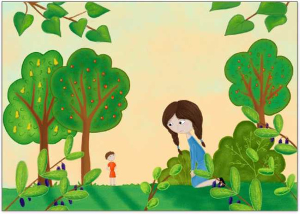 Ти слез с дерева и подошёл к Кате. Она увидела мальчика, абсолютно такого же, как все другие мальчики, вот только ростом он был чуть больше её ладошки.