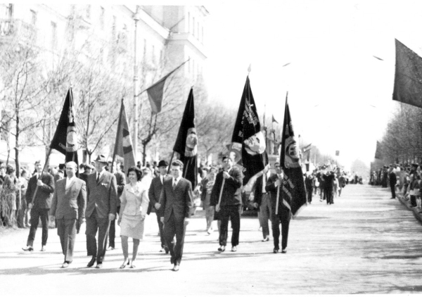 Особенно я им любовался, когда подтянутый, довольный результатами работы коллектива, широким, спокойным и твёрдым шагом он шёл впереди колонны, разукрашенной транспарантами и флагами, знамёнами и лозунгами, декоративными цветами и разноцветными шарами, с духовым оркестром под песни и пляски весёлых демонстрантов. В то далёкое время такие мероприятия проходили организованно.