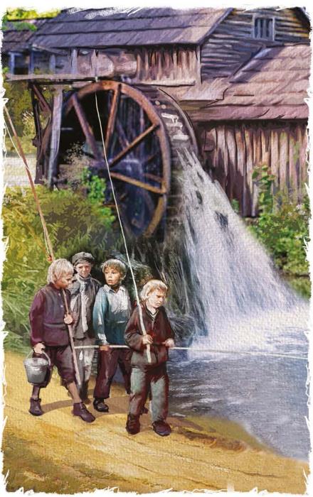 А утром, чуть свет, когда в доме все ещё спали, я уж прокладывал росистый след в густой, высокой траве сада, перелезал через забор и шёл к пруду, где меня ждали с удочками такие же сорванцы-товарищи, или к мельнице, где сонный мельник только что отодвинул шлюзы и вода, чутко вздрагивая на зеркальной поверхности, кидалась в «лоток»[10] и бодро принималась за дневную работу.
