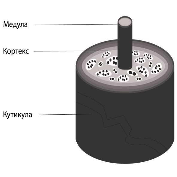 Медулла есть в волосах большинства животных, но в волосах у людей этот слой непостоянный – она может присутствовать, быть прерывистой или вообще отсутствовать