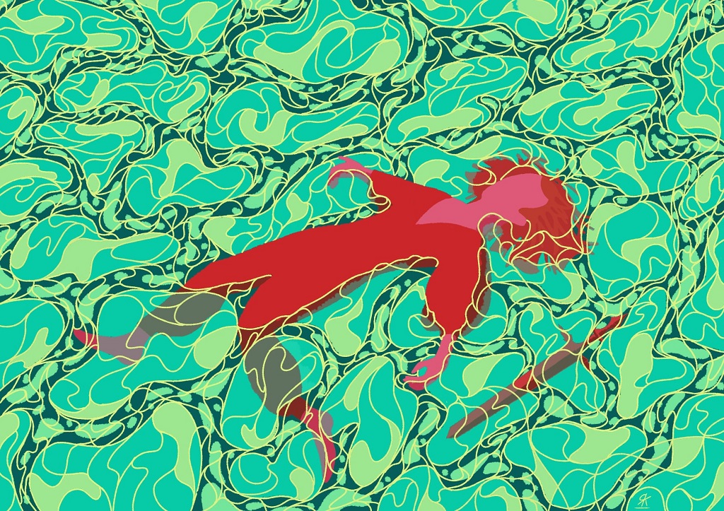 Плеск воды превратился в звук разбивающихся стёкол. А левая рука девушки – в красный меч. Монстры-волны всё ещё грозно поднимались над хрупкой пленницей моря, но она смело разбивала их на тысячи брызг-осколков. Волн становилось всё меньше, а море словно загустело, замедляясь и успокаиваясь, покорно укладывая ослабевшее тело девушки на свою поверхность.
