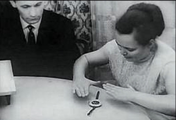 «Итак, мы зарегистрировали удивительное явление макропсихокинеза (перемещение легкий предметов по столу под влиянием биополя) и установили, что экраны из металла и диэлектрика не являются препятствием для оператора, однако предмет, помещенный в вакуум, воздействию не подвергается».