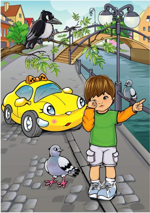 Однажды Таксюша ехала по набережной вдоль реки и увидела мальчика. Он стоял около заборчика и плакал.