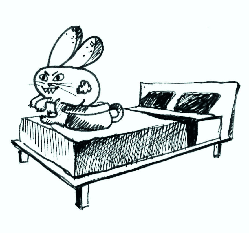 Радовало и его осознанное поведение в плане туалета: кролик, будучи на свободном выгуле, регулярно справлял нужду в одно и то же место. На мою кровать.