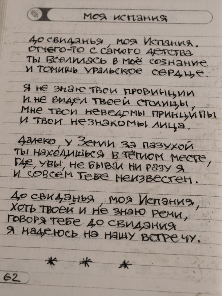 Это было в 2016 году, кажется. Я был на похоронах, сказал пару слов. От Алексея у меня остался сборник его стихов Моя Испания и афиша из Сургута куда, мы ездили с ним. На афише его лица почти не видно…Ещё он написал сборник стихов под названием Гагарин и Битлы. Пока мы ехали в Сургут он читал мне эти стихи по памяти. Очень интересно, талантливо.. Я был в восторге. На нашей афише организаторы написали_ Акустический дуэт испанских гитар в жарких ритмах фламенко. Ну, захотелось им так. Но мы не играли фламенко и гитары у нас были не испанские(два Ovation). Билеты были проданы, назревал скандал. Были у нас в репертуаре с десяток вещей отдалённо напоминающих фламенко( типа латино. босса, румба и т.п.).На третьей вещи кто-то крикнул из зала–А где фламенко? На этом и ограничились. https://disk.yandex.ru/d/zmHPVogd5rNPaw