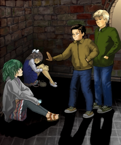 Засмотревшись на грубиянку с зелеными волосами, я не сразу заметил, что в каморке находятся еще один человек. В самом темном углу на школьном рюкзаке сидела малышка лет восьми в синем костюмчике с плиссированной юбкой и белым бантом в волосах. На коленях у нее лежала книжка с принцессой на обложке, рядом примостился мешок со сменкой. Девочка быстро взглянула на меня и отвернулась, но я успел поймать ее взгляд. Цепкий, подозрительный и совсем недетский.